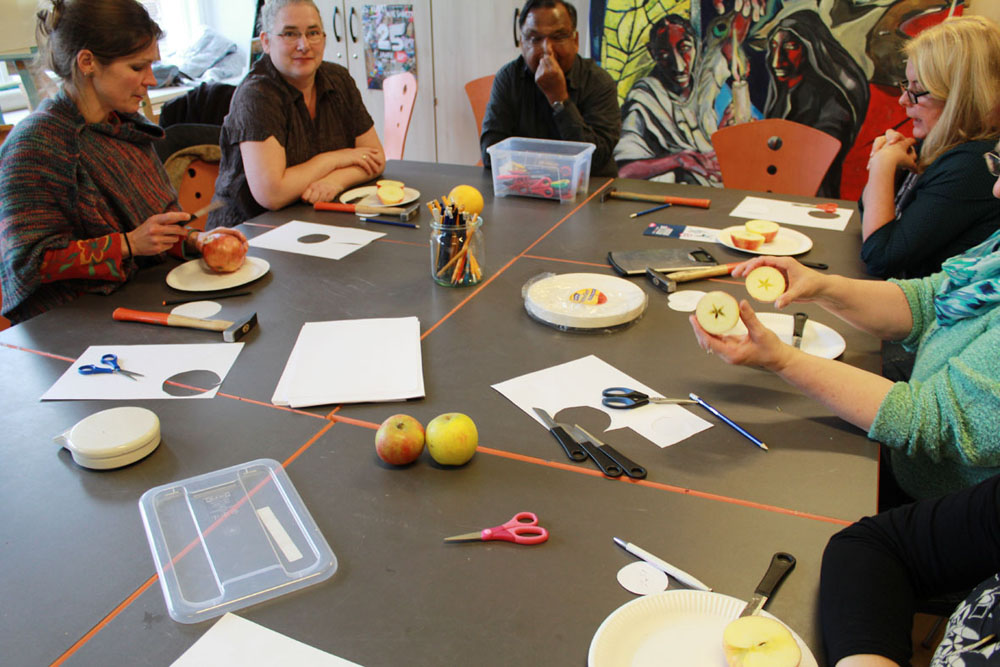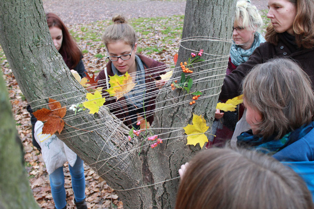 Afra Riemer entführt Sie ins Themengebiet „Kunst in und mit der Natur“. Im Garten werden Sie eingeladen, mit allen Sinnen in die Material- und Farbenvielfalt der Natur einzutauchen und mit vorhandenen Natur-Materialien kleine Kunstwerke zu gestalten. Durch eigenes Ausprobieren erhalten alle eine Vielzahl an Anregungen wie sie Land-Art in der praktischen pädagogischen Arbeit lustvoll einsetzen können.