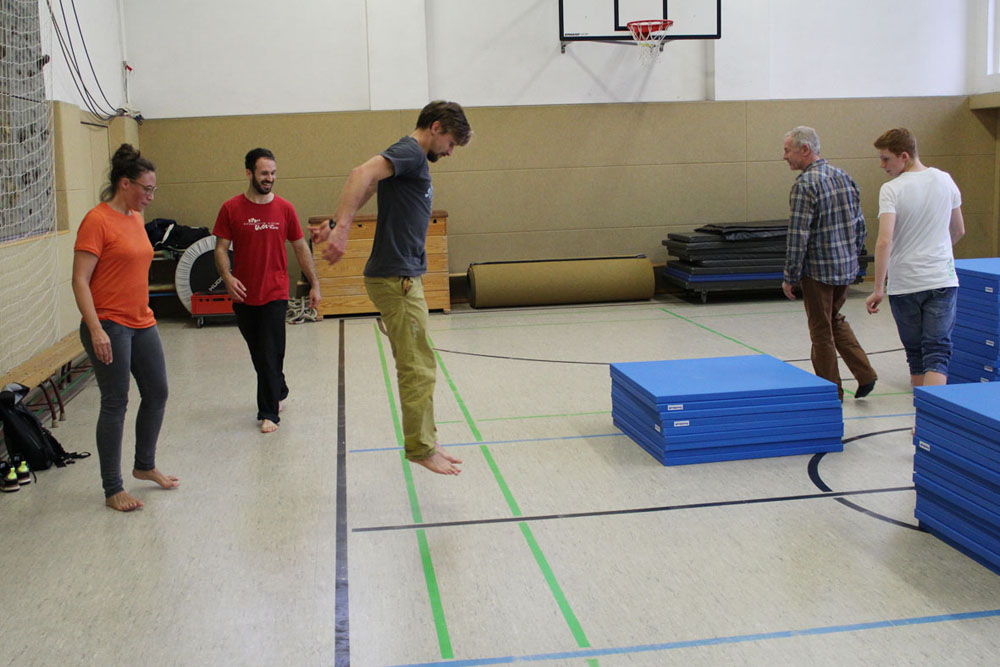 Oder die Kunst der Fortbewegung. Lukas Schapp und Steven Koglin von „Potsdam in Bewegung – Akademie“ stellen mit Parkour eine junge Bewegungsmethode vor, die sich durch das Erleben und die kreative Auseinandersetzung mit dem Raum, der uns umgibt, auszeichnet. Der Ansatz ist spielerisch und offen. Strukturen im urbanen Raum werden gezielt durch Bewegungen umgedeutet und somit mit neuer Bedeutung versehen. Das Parkourtraining eröffnet den Teilnehmenden die Möglichkeit zur direkten Selbstreflektion des eigenen Handelns, mit dem Ergebnis Vertrauen in sich selbst als Grundlage für Vertrauen in Andere und die Umwelt zu schaffen.